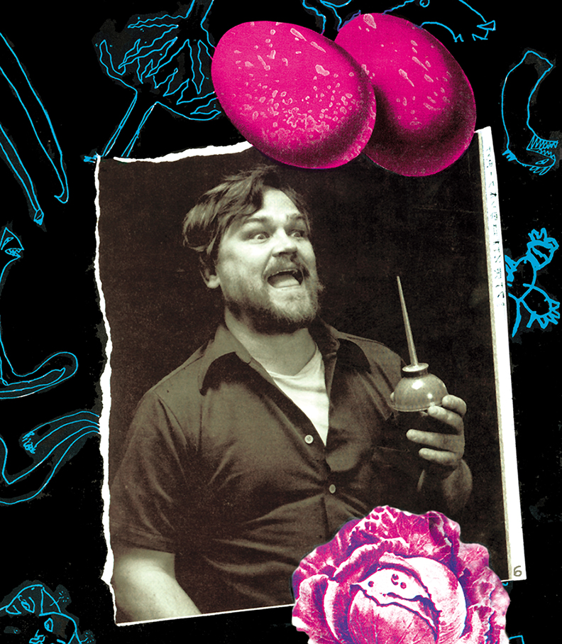 When Bruce Hampton made his first solo album, he wasn’t interested in just recording some new songs that featured his imaginative, inscrutable lyrics juxtaposed with a brilliant fusion of instrumental styles. He had other aspirations. He wanted to showcase his comedy, the stuff he was leaving on the stage at the Midtown Pub (mainly from 1977 to 1979). And he wanted the album to look good, so he enlisted his friend Flournoy Holmes, the Atlanta artist whose work had become the visual incarnation of southern rock thanks to masterpiece album covers like the Allman Brothers’ Eat a Peach. Flournoy also helped name that album, the same service he inadvertently provided to Bruce.